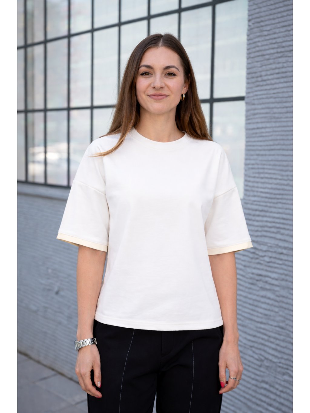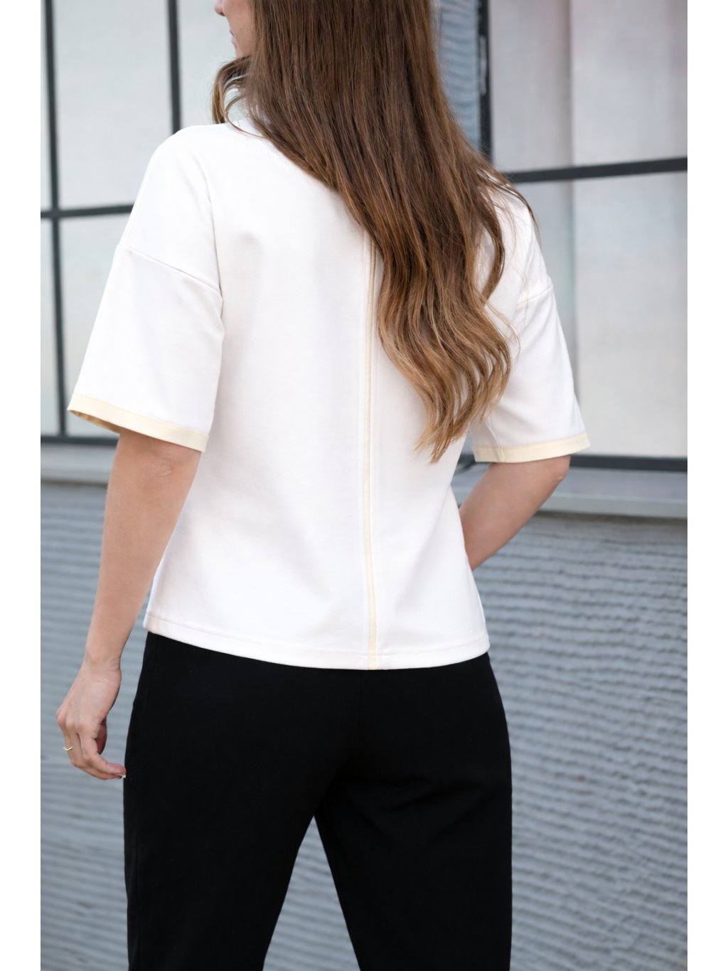 Objevte krásu jednoduchosti s naším dámským topem “Urban Ease”, který spojuje nadčasovou eleganci s moderním městským stylem. Tento top v krémové barvě s jemnými krémovýmí detaily na rukávech a zadním švu je dokonalou volbou pro ženy, které chtějí vypadat upraveně a stylově bez zbytečné námahy.