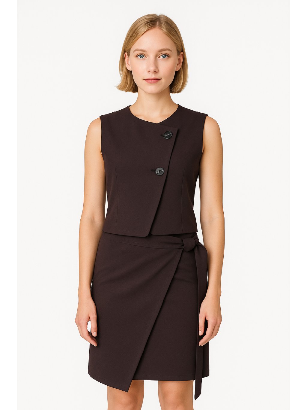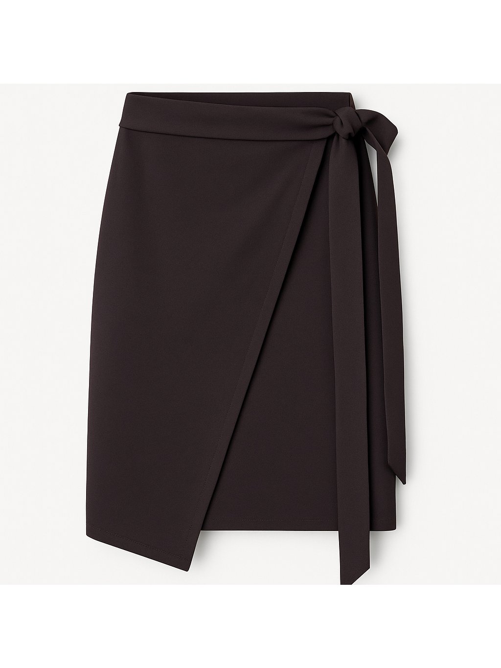 Elegantní zavinovací sukně Elena v tmavě čokoládovém odstínu je ideální volbou pro moderní ženu, která hledá styl a pohodlí v jednom. Minimalistický střih s asymetrickým předním dílem a vázáním v pase vytváří lichotivou siluetu a působí nadčasově ženským dojmem.