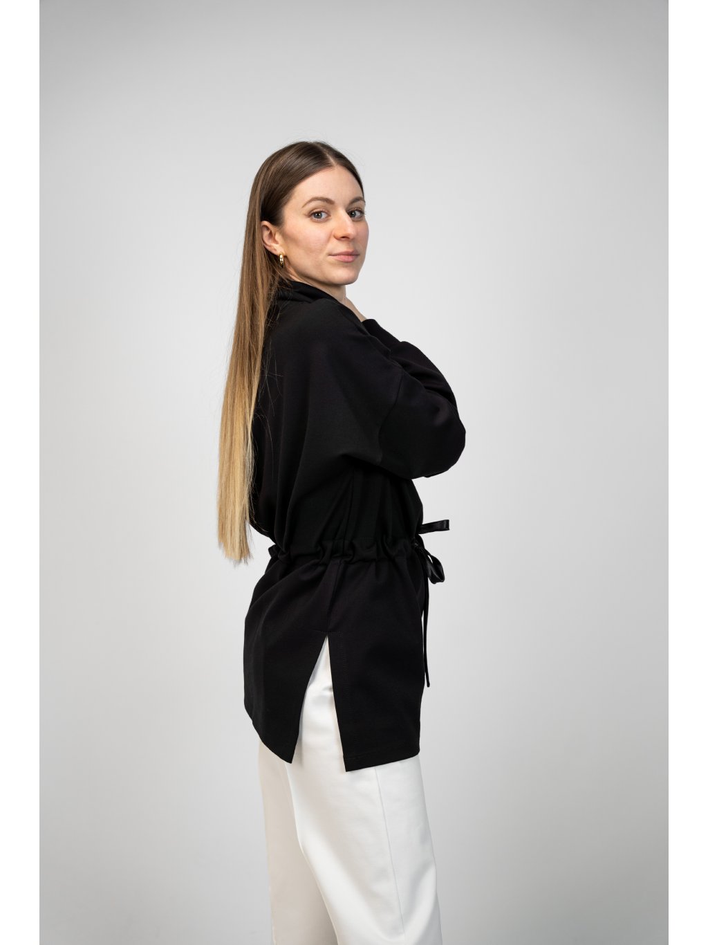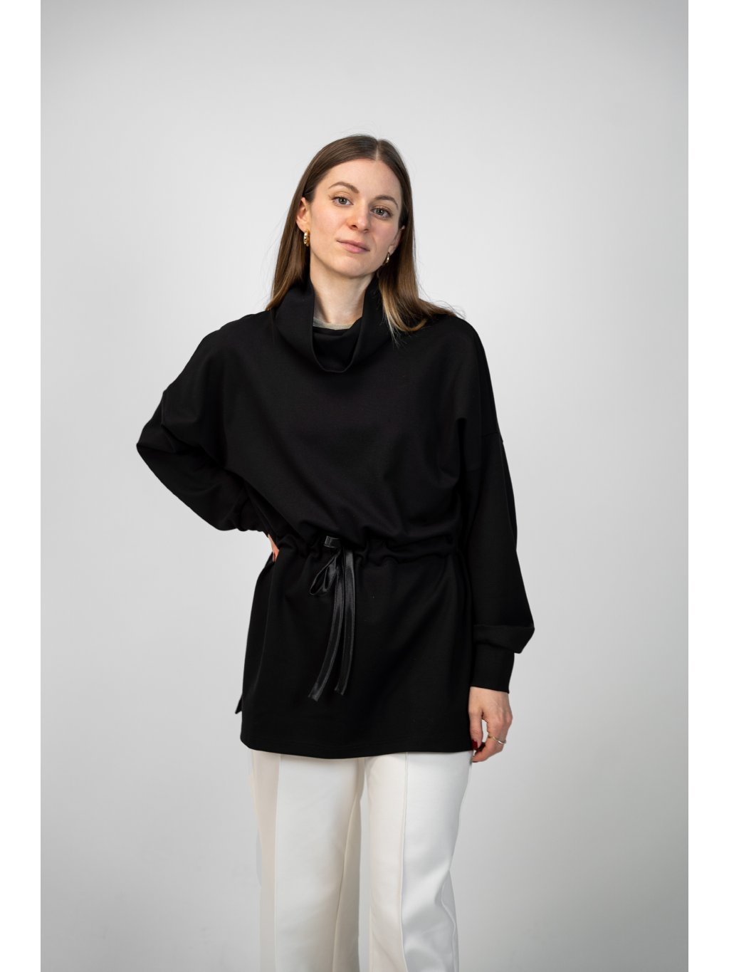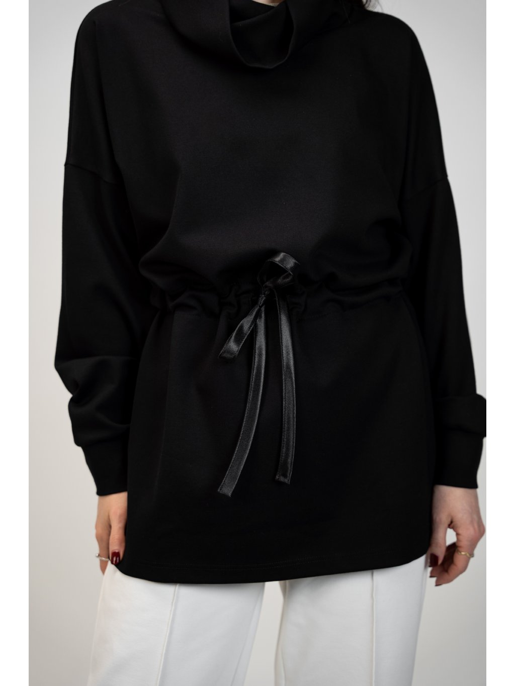 Černá tunika s vysokým límcem a saténovou šňůrkou