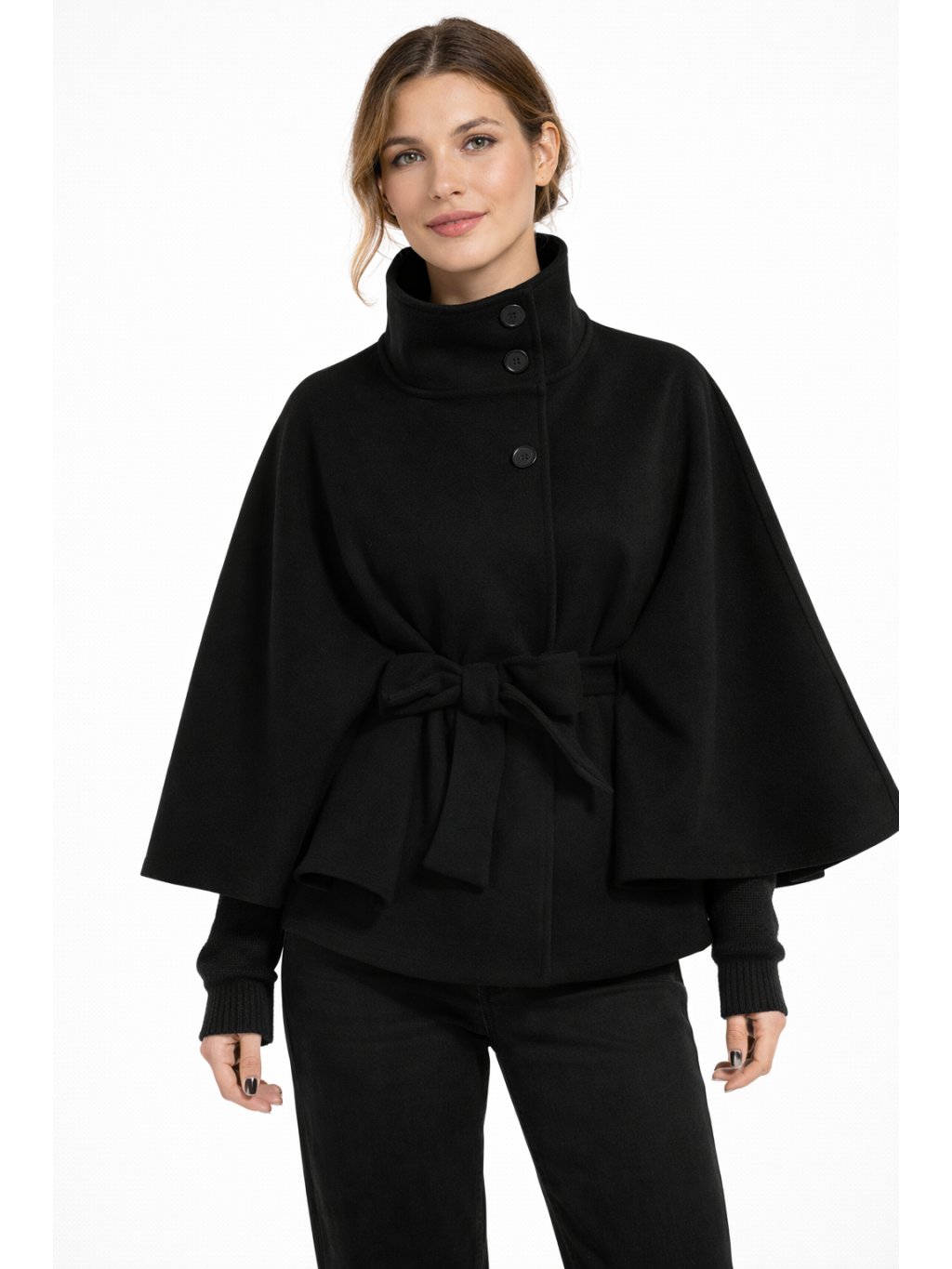 Elegantní dámský kabát Aurora je ideální volbou pro ženy, které hledají nadčasový styl, komfort a kvalitní materiál. Kabát má moderní kratší střih s jemně rozšířenými rukávy ve stylu kimona a vysokým stojáčkem, který krásně chrání krk před chladem. V pase je doplněn zavazovacím páskem, díky kterému si snadno vytvarujete siluetu podle svých představ.