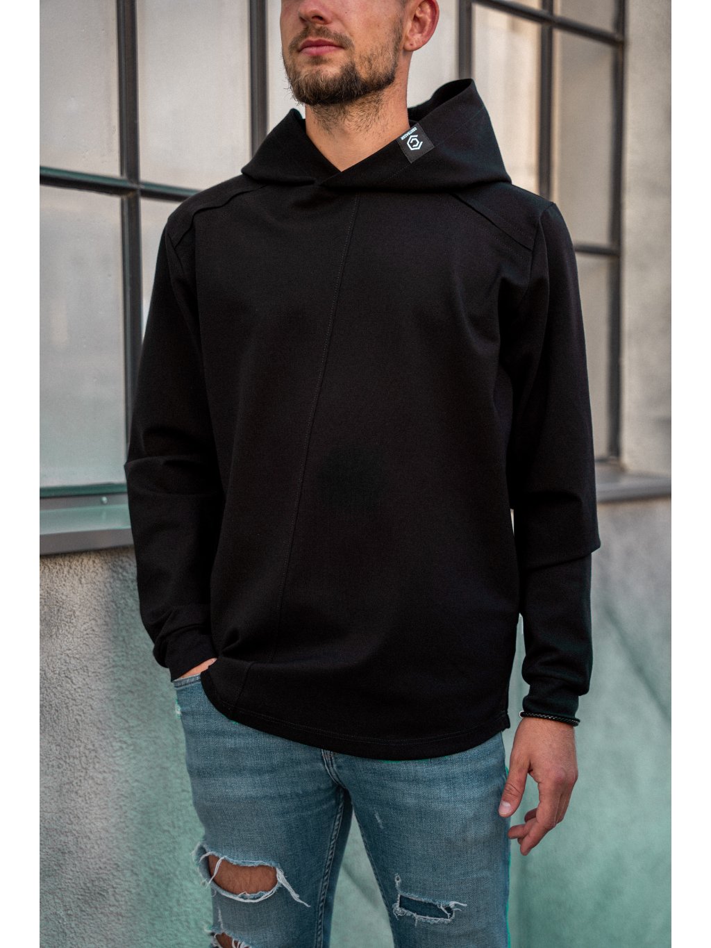 Pánská mikina s decentním logem na přední části kapuce.